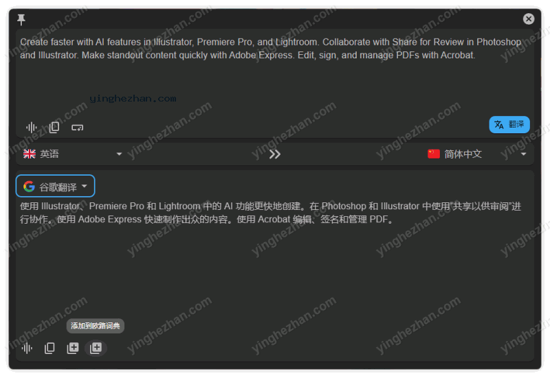 支持9+翻译引擎切换(DeepL、OpenAI、谷歌、百度、阿里、必应、腾讯、火山、彩云小译)。