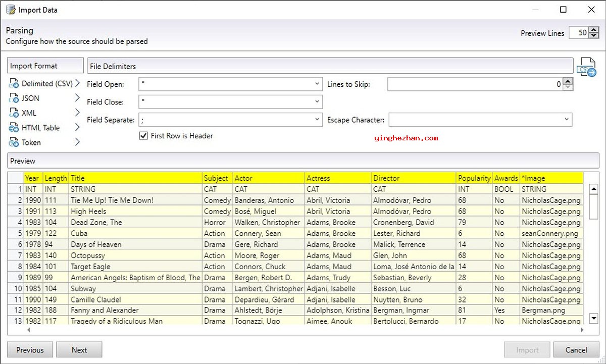 导入向导,可从文件或剪贴板预览任何分离的格式,JSON,XML,HTML与令牌。