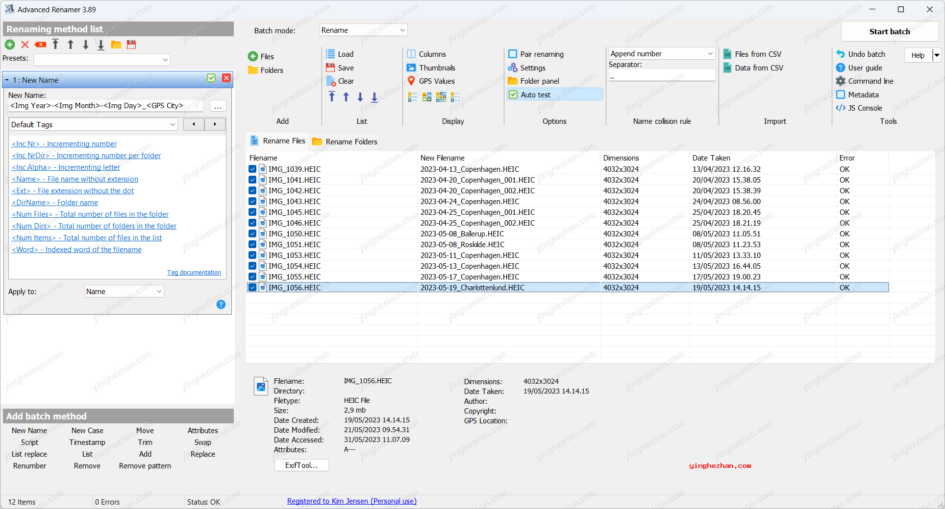 8、添加GPS坐标或反向地理编码坐标以将城市名称添加到文件名。